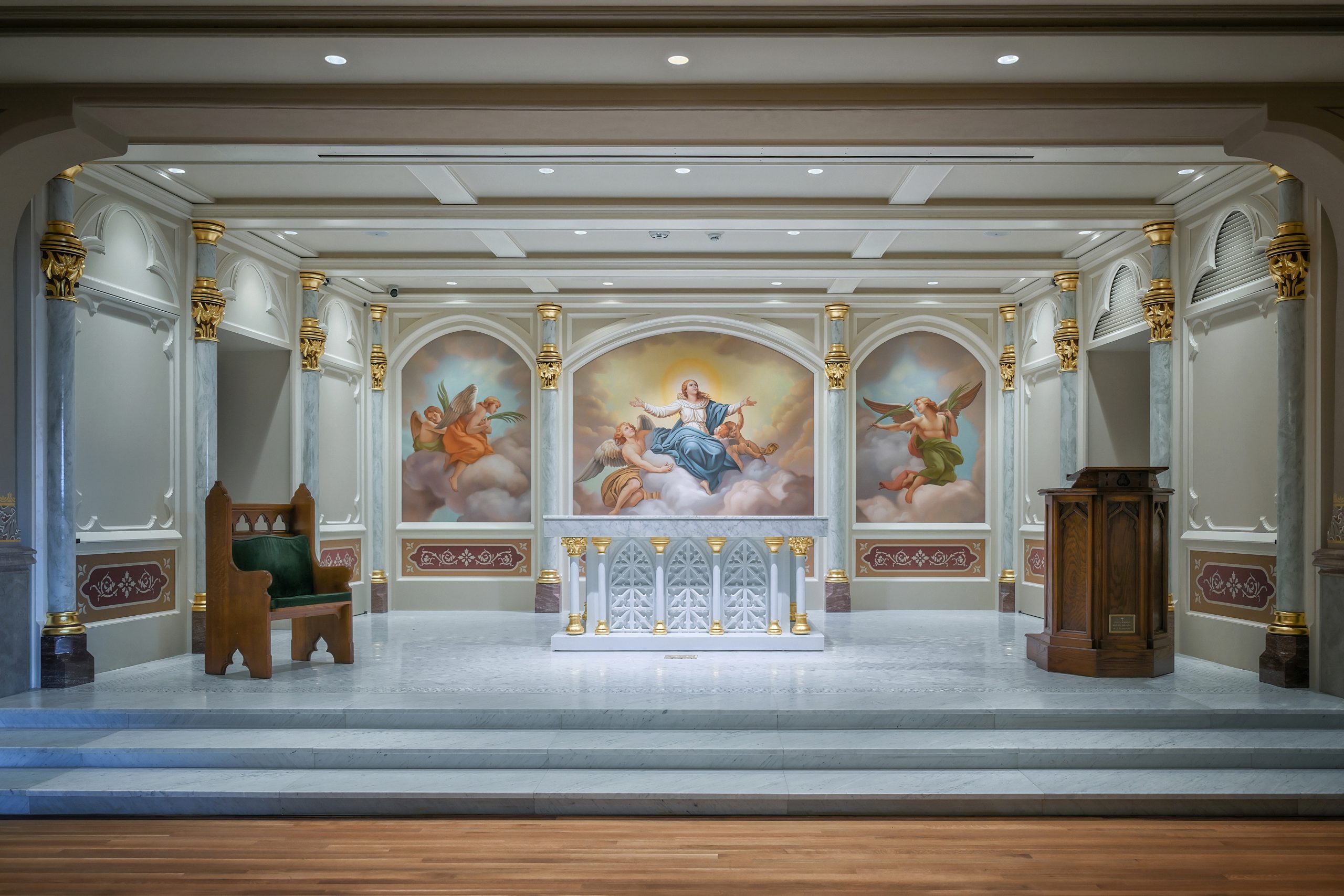 Reopened in April of 2023 after a substantial renovation, the stunning Regina Coeli Hall is a complete transformation of the old Parish Hall – a gathering space for receptions, banquets, special events and concerts.