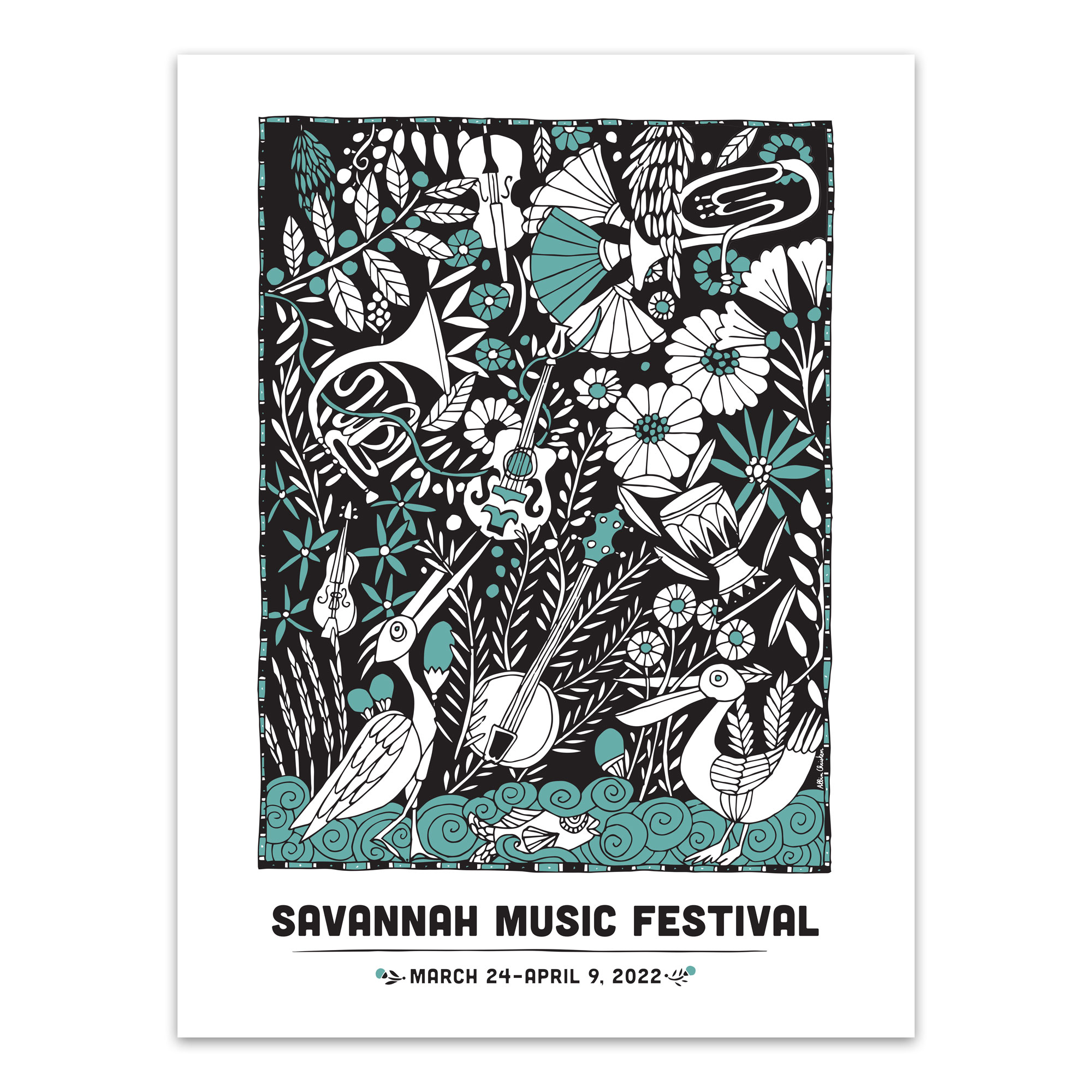 For the 2022 poster design, SMF commissioned Albin Christen, a visual artist, illustrator and freelance graphic designer living in Lausanne, Switzerland. Christen created an illustration that represents the festival as a “musical garden.” This playful “jardin” depicts our region’s abundance of plants and coastal wildlife combined with a mix of musical instruments.