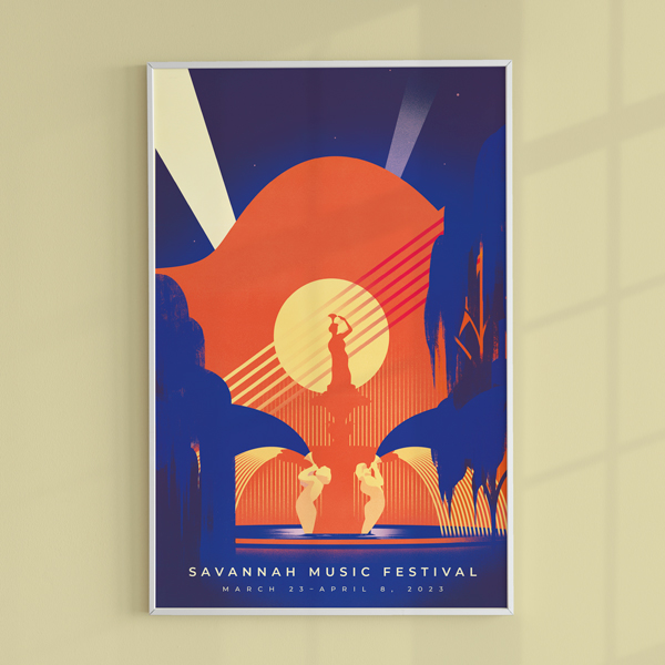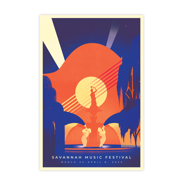 To create an illustration for the 2023 Savannah Music Festival poster, SMF commissioned British illustrator Charlie Davis.