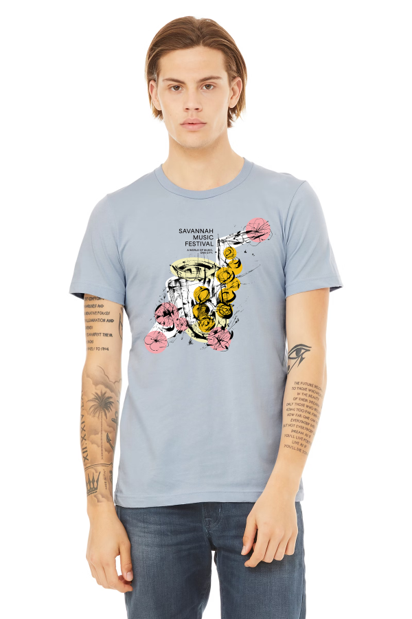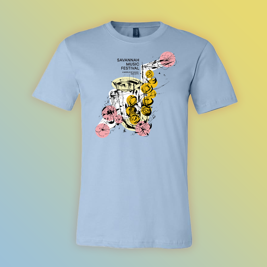 Official 2025 Festival T-Shirt with the illustration of a saxophone by artist Matt Hebermehl.